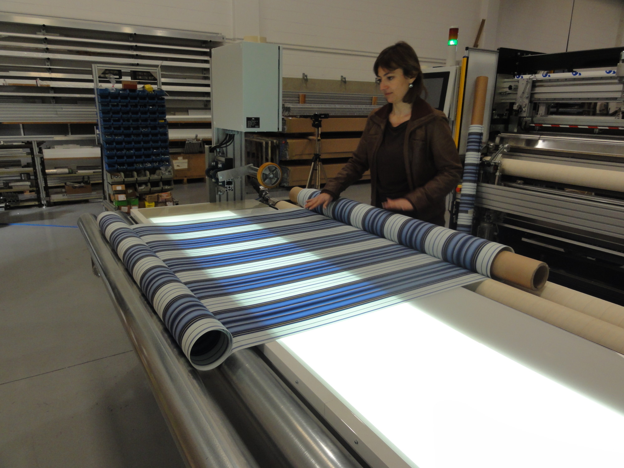 LED light for on-table inspection – built-in to identify fabric defects.